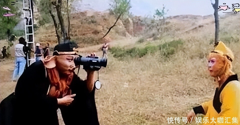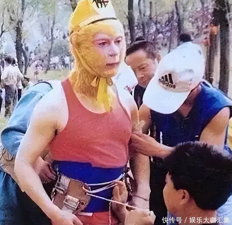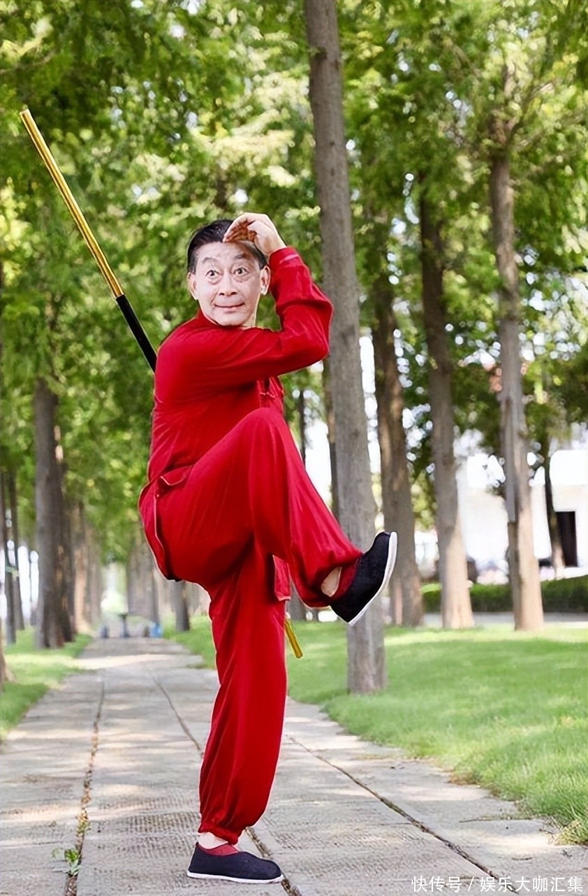 拍摄间隙,他曾扛起八戒的九齿钉耙跳起广场舞。